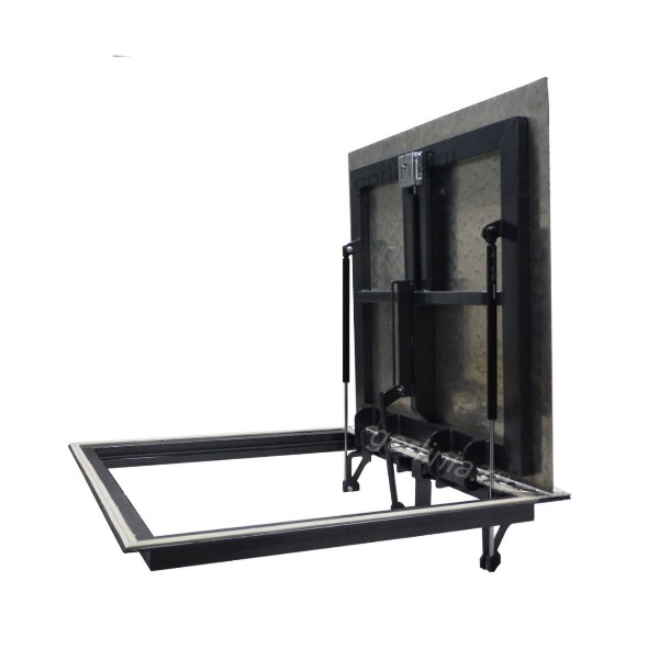 Рама в габаритах 890х890 крепится анкерами по контуру плиты через полку уголка в отметку чистового пола.
