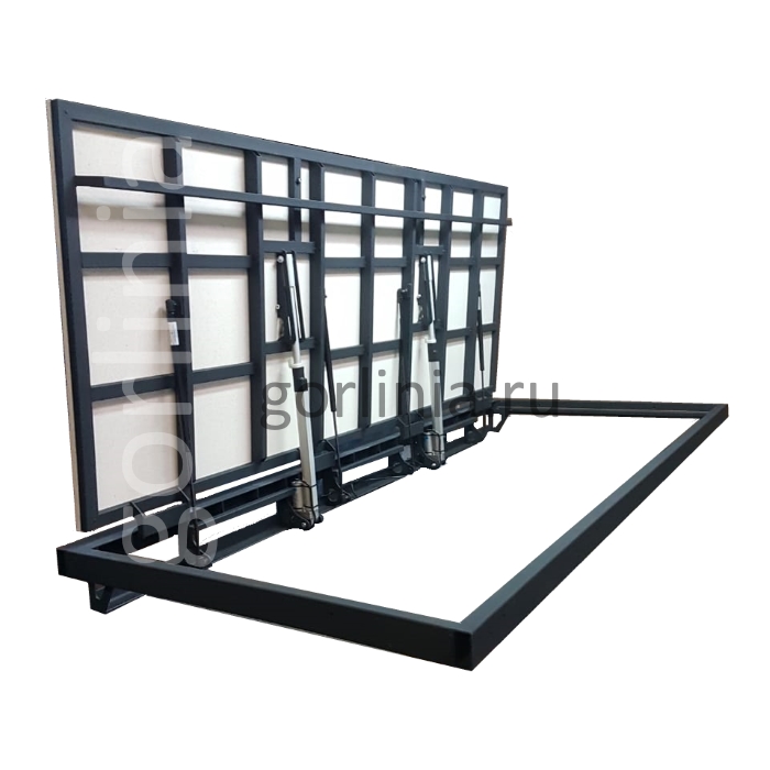P.S. До установки и облицовки допускаются перекосы рамы и некорректная работа механизма (подвисание привода в полузакрытом состоянии из-за сопротивления газпатронов), так как каркас не выставлен, не закреплен и не нагружен, а усилие подъемников рассчитано на дополнительный вес напольного покрытия на полотне двери.