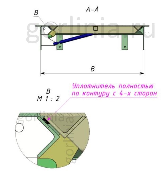 Замкнутая опорная поверхность со сплошным уплотнителем отсекает тягу холодного воздуха из погреба с одной стороны, задерживает влагу и грязь с колес автомобиля.