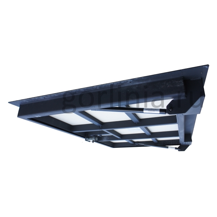 Облегченная коробка из профилированного листового проката 3 мм с наличником 35 мм (10 со стороны открывания) - есть требования по установке, предварительная консультация обязательна! Каркас дверки с обвязкой сварен из трубы 30х20, заполнен ГВЛ под чистовую отделку. Конструкция смещенного за ось шарнирного соединения сохраняет лаза в чистоте 1150х600 для удобства спуска по лестнице в подвал.