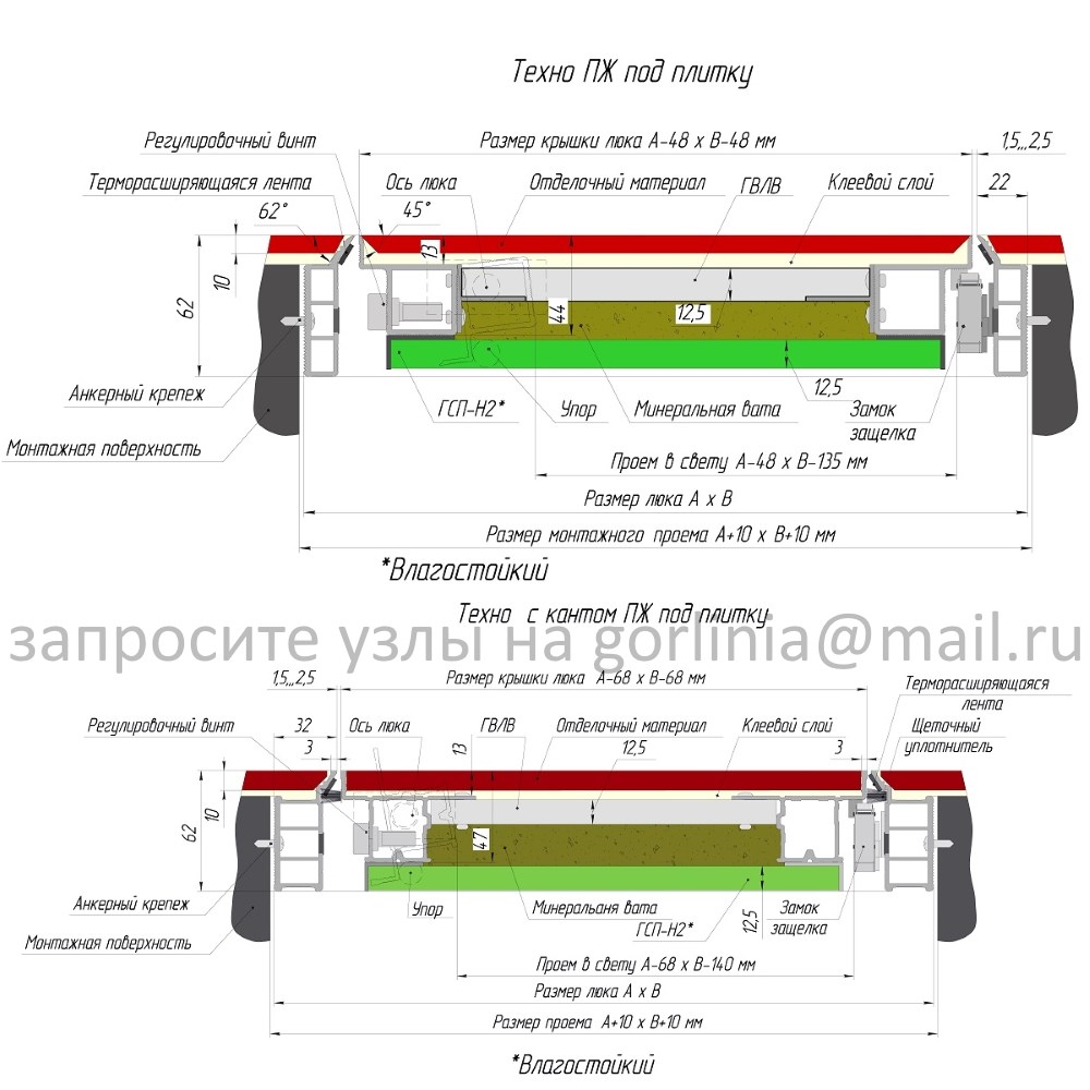 Ограничение: осевые петли и структура коробчатого профиля рассчитаны под нагрузку ≤60 кг облицовочного материала с клеевым слоем на 1 м² створки.